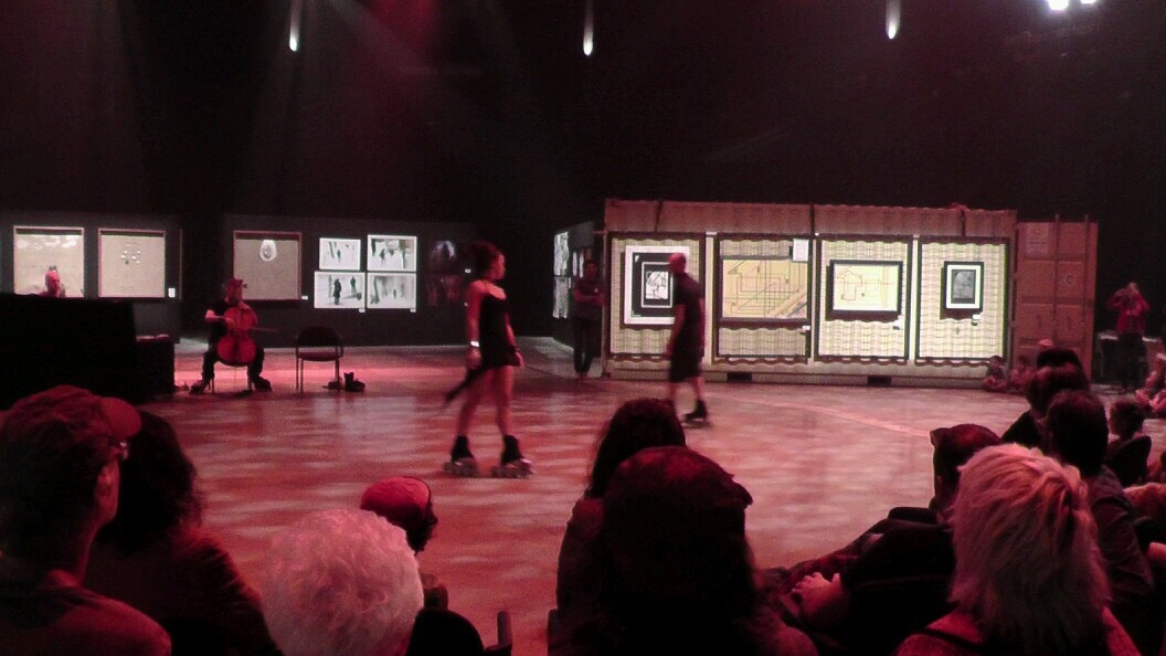 TOHUは、ジャリーという駅から2キロほど離れた場所にある。道中は、周りに高い建物はなく、飲食店がちらほらとあるような街並みであった。施設は、本館とサーカステントの2つあり、飲食店も備えていたので公演までの時間を過ごすには困らないだろう。本館には、チケット売り場だけではなく、以前はサーカス会場として使われたホールも併設されており、そこでは様々な企画が行われていた。通常時は、美術館として様々な作品を展示していた。30点以上の絵画や彫刻があり、十分な見応えがあった。基本はフランス語であるが、英語での説明も記載してあったので、私達にも理解しやすかった。また、1日に2回ほどそのホールの一部を使ってローラースケートを使ったショーも行われていて、男性1人と女性1人が華麗な滑りを見せていた。観客は、立ちながら、もしくは床に座りながら観覧し、目の前まで迫ってくる彼らのショーに盛り上がっていた。共に流れる音楽もその公演の魅力の1つでギターの音がローラースケートの技とマッチし、幅広く楽しまれるものとなっていた。